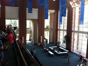 The walkway in the background goes to a pedestrian bridge that connects to the ballroom building across the street. The keynote sessions were held there. Smaller workshops were held in both buildings.