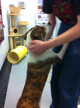 We found her last week, but the adoption center doesn't allow you to take the animals home until they've been spayed which will be tomorrow. We'll be able to pick her up on Thursday. We visited her today, so these are taken in the meet and greet room at the pet adoption center.