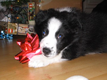 Being so tired lately means that it is harder for me to do all the Christmas things that I’d like to -- it’s been years since I’ve gotten Christmas cards out or baked cookies. Maybe I’ll get my son to bake some this week! But the joy of Christmas is still here. God started this! In our culture, Santa gets too much prominence, but even he represents joy and love -- and fun! All good things to have at Christmas -- all things that God wants us to know. Christmas doesn’t always live up to how we want it to be -- with the house sparkling and everyone overjoyed with being together, perfect gifts, and lots of wonderful food. I’ve found that trying to have everything perfect is not the key; instead, the key is to enjoy the good and simple things that do come our way -- like the puppy in the picture above that grew up to be Luath -- and to remember the amazing gift of Jesus’ birth.