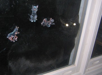 Every so often, I’ll type in the chat room, “brb; kitty in the window”. Now, “brb” means “be right back”, but when I got back, I’d see questions about the kitty. Well, it turns out that my cat, Pepper, jumps into the window behind me where I sit at my computer when he wants to come back in the house. I decided to post a picture of him in the window so you’d know what I mean next time.